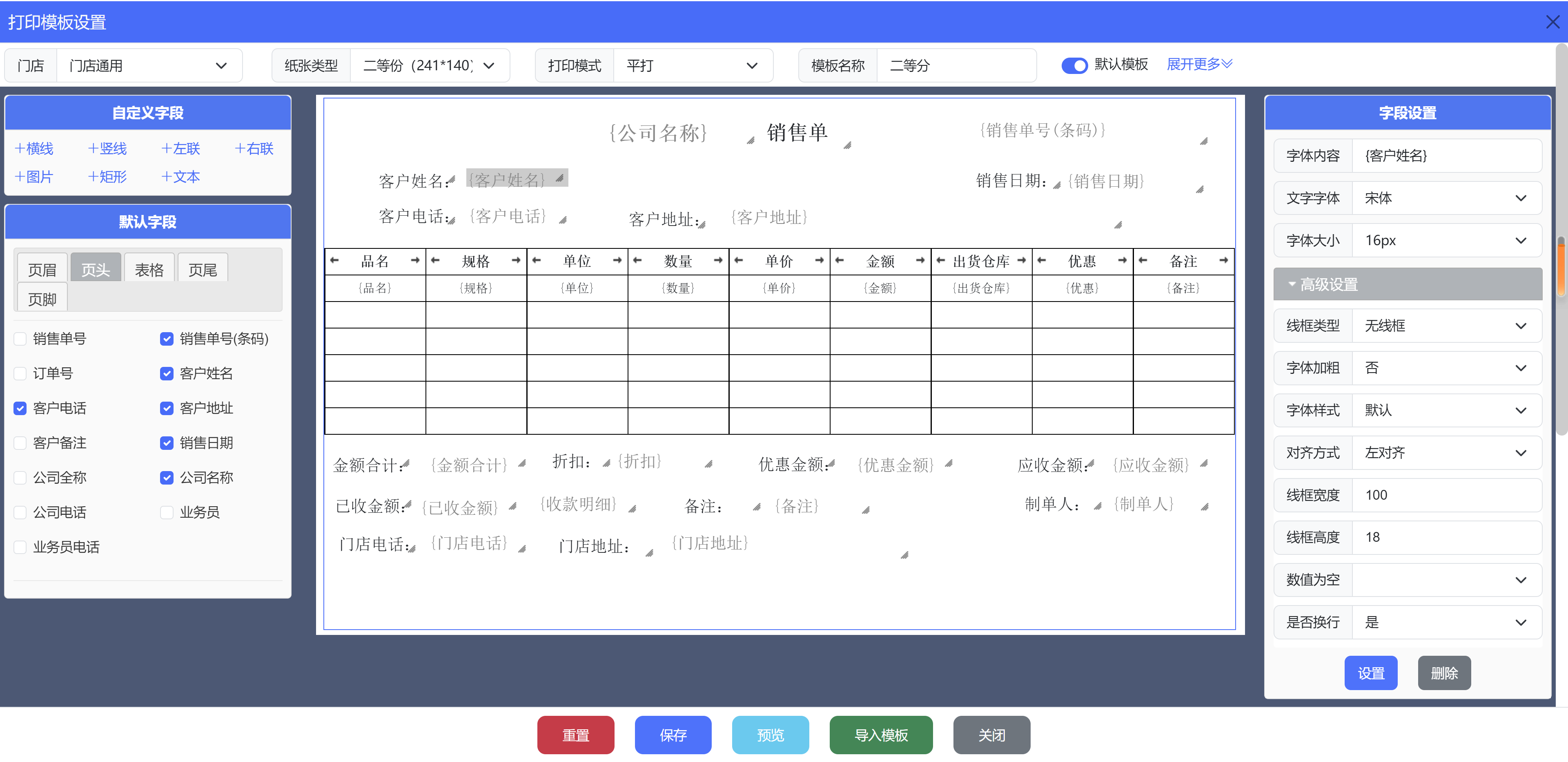 支持自定义设计打印模板,基于Lodop打印控件开发